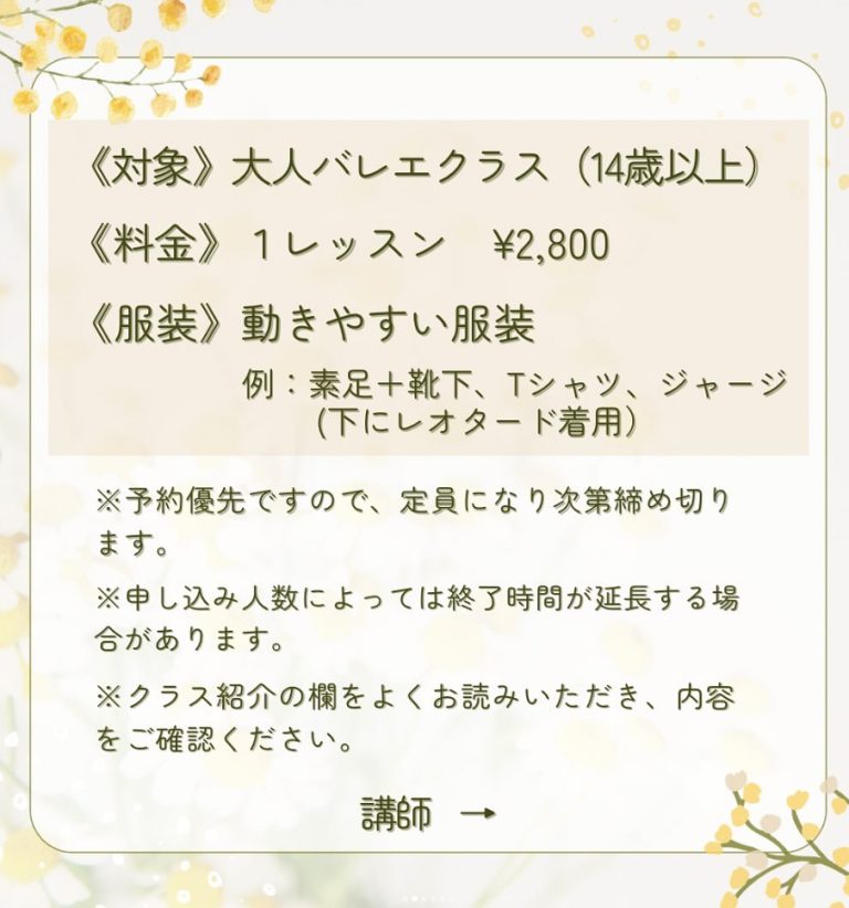 ソウダバレエスクール卒業生でドイツ、ドュッセルドルフを拠点に活躍する、北元咲和歩先生のWSです❗
