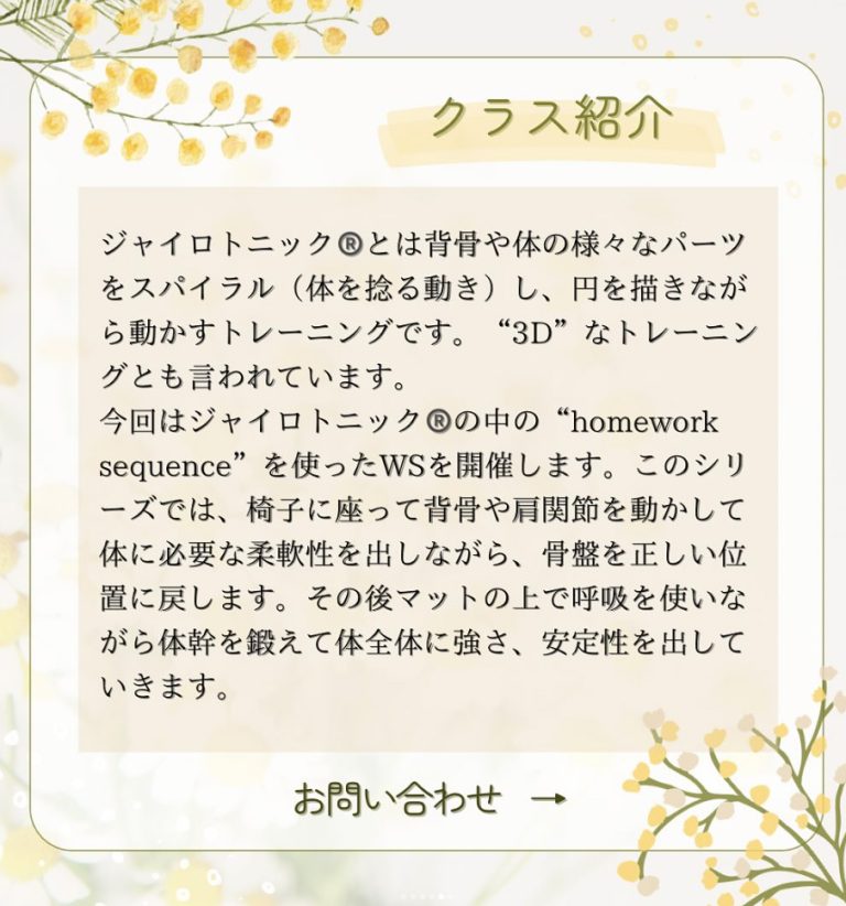 「ジャイロトニック・ワークショップ」は終了いたしました。